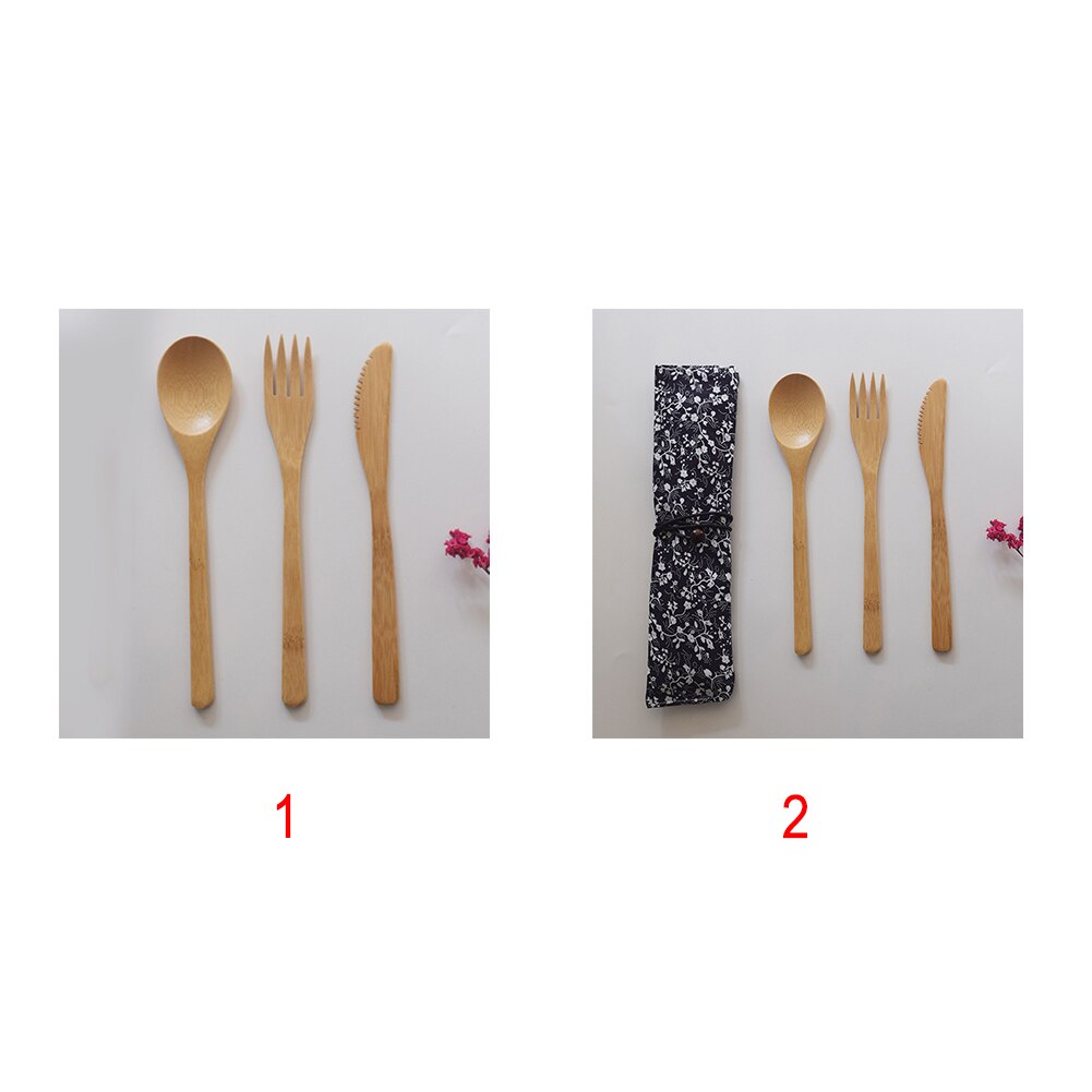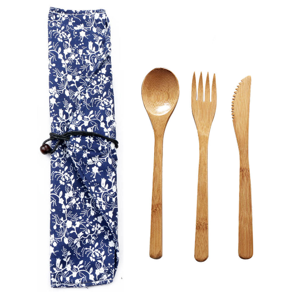 - 1 Set Bamboo Tableware (Knife+ Fork +Spoon, With Cloth Bag )