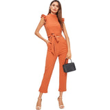 Full Length With High Quality Cotton Army Green Women Full Set Belted Jumpsuit With Zip Front Pocket