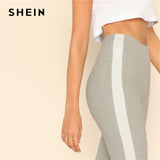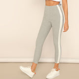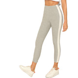 High Waist Sporting Stretchy Workout Leggings Grey Contrast With Side Seam Crop Leggings