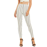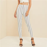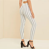 The Basic Style White High Waist Striped Crop Leggings Women Spring Summer Fall 2019 Work wear