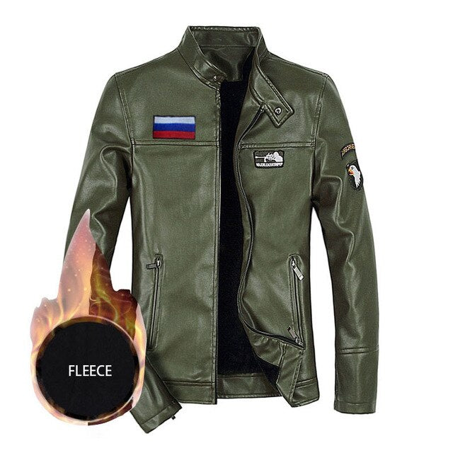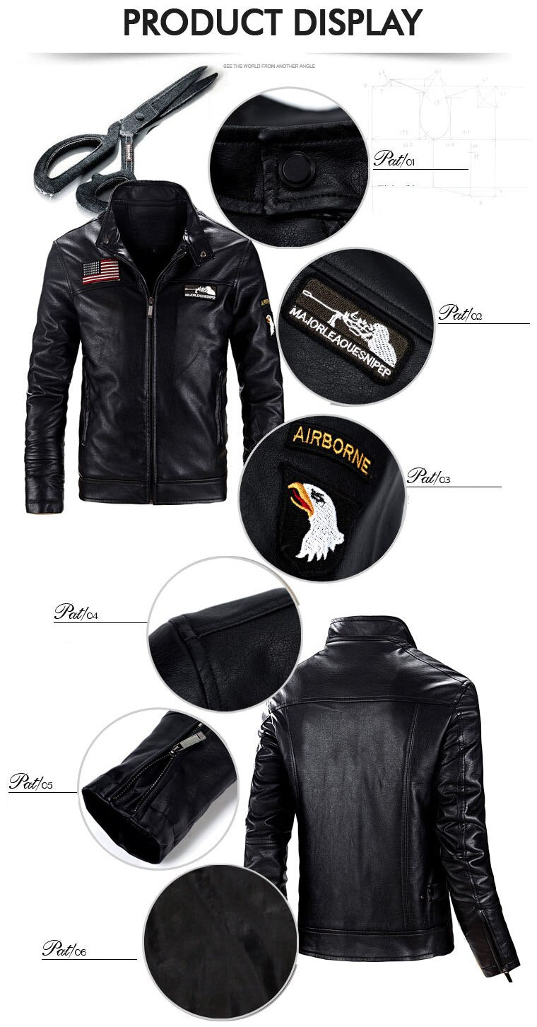Mens Winter and Autumn Stand Collar Lather Jackets For Motor Cycle