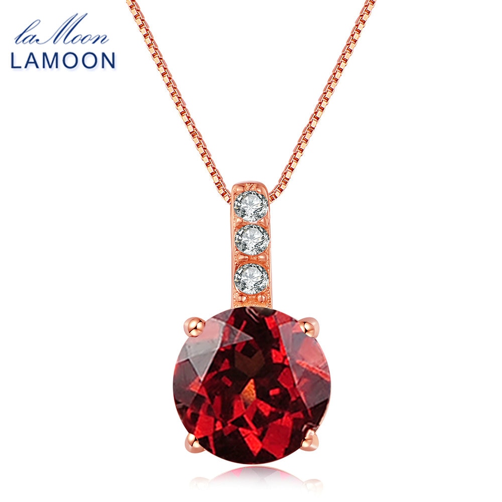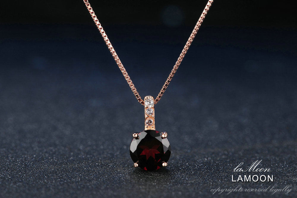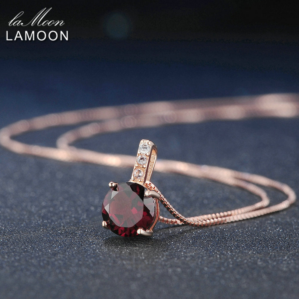 Pendant Red Garnet Gemstone 925 Sterling Silver Necklace Women