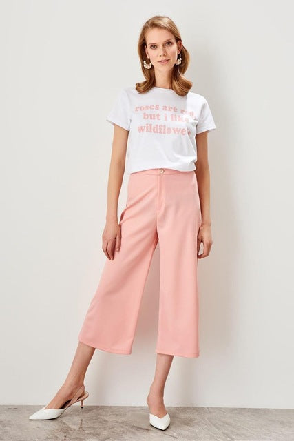 Salmon Pink High Waist Straight Leg Pants Lyocell For Spring Work Wear