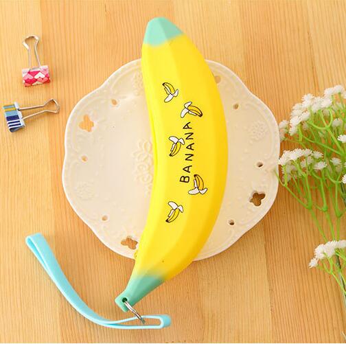 Banana Designed Silicone Pencil And Pen Bags Storage For Kids Study Stationary