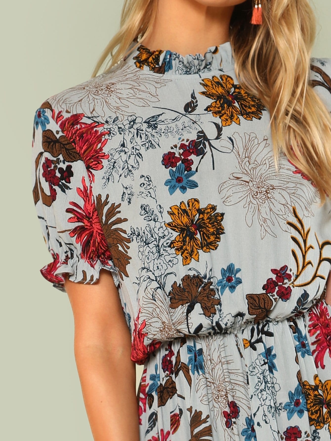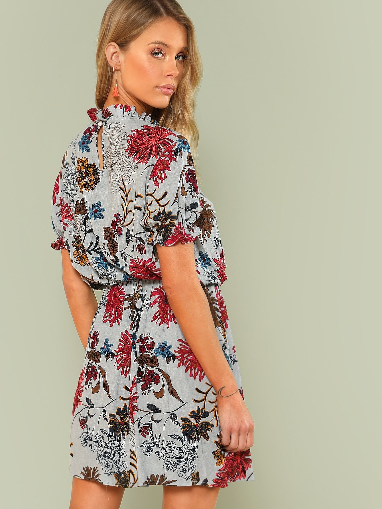 Frill Trim Floral Blouson Dress